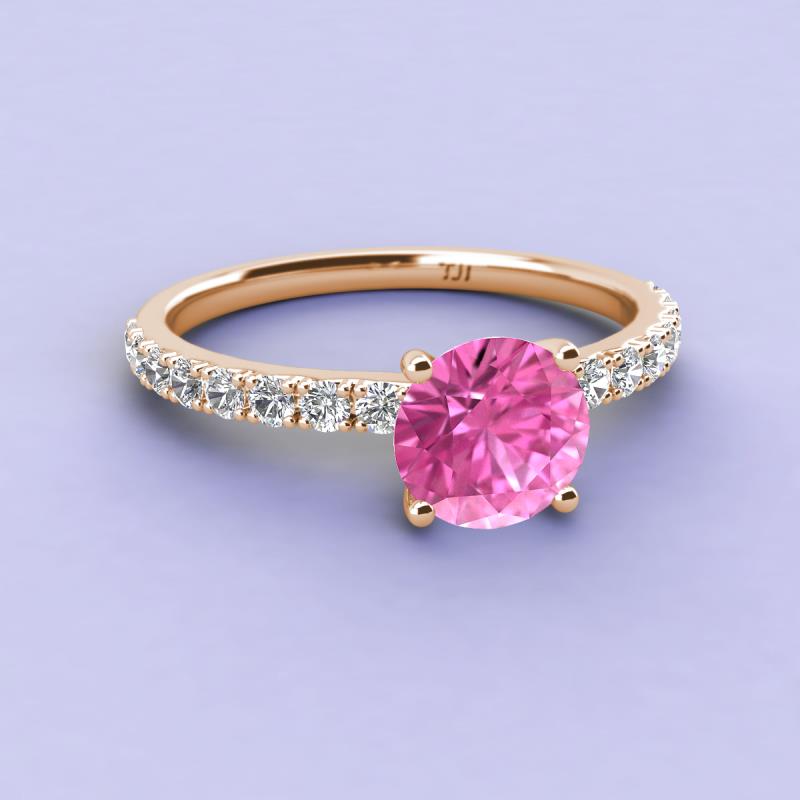 Round Lab Created Pink Sapphire and Diamond 1 1/4 ctw Womens Engagement Ring 18K Rose Gold More Details ...