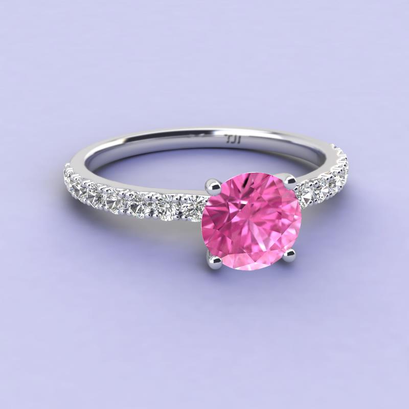 Round Lab Created Pink Sapphire and Diamond 1 1/4 ctw Womens Engagement Ring 18K White Gold More Details ...