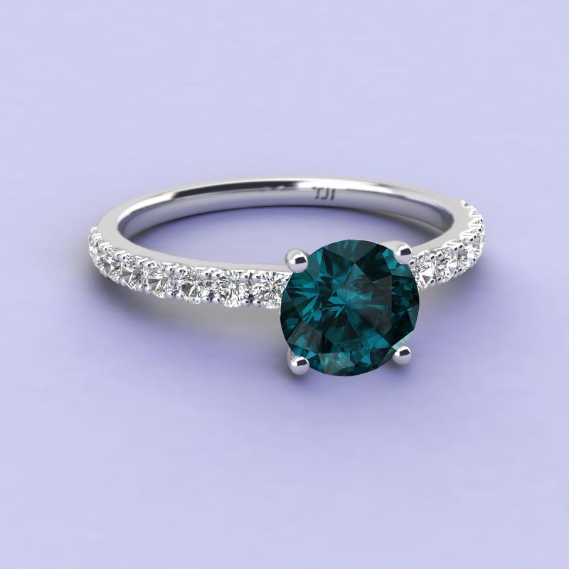 You can never go wrong with the enduring sophistication of a round-shaped stone. This refined Engagement Ring has center Round London Blue Topaz, set on a Diamond accented band.