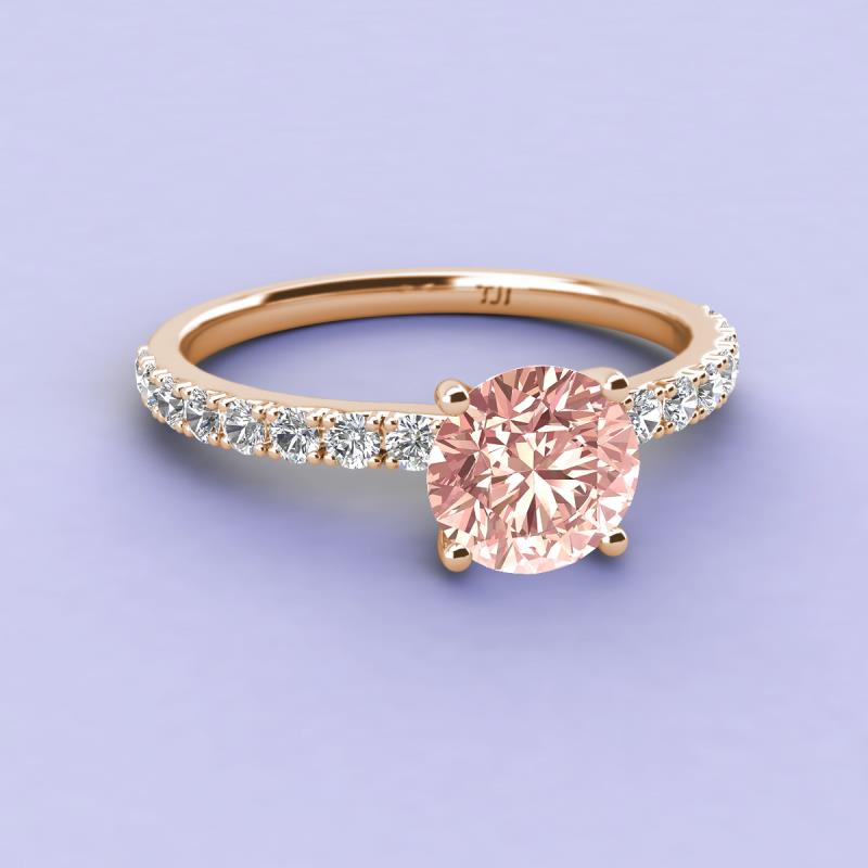 You can never go wrong with the enduring sophistication of a round-shaped stone. This refined Engagement Ring has center Round Morganite, set on a Diamond accented band.