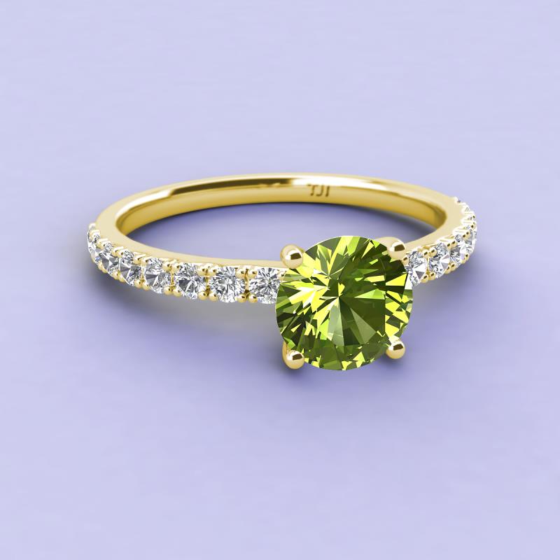 You can never go wrong with the enduring sophistication of a round-shaped stone. This refined Engagement Ring has center Round Peridot, set on a Diamond accented band.