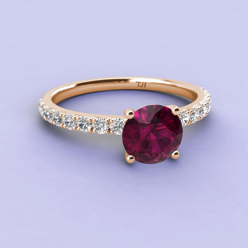 Round Rhodolite Garnet and Diamond 1 3/8 ctw Womens Engagement Ring 18K Rose Gold More Details ...