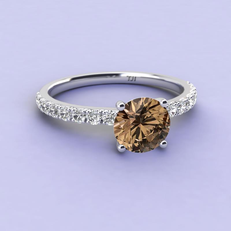 You can never go wrong with the enduring sophistication of a round-shaped stone. This refined Engagement Ring has center Round Smoky Quartz, set on a Diamond accented band.