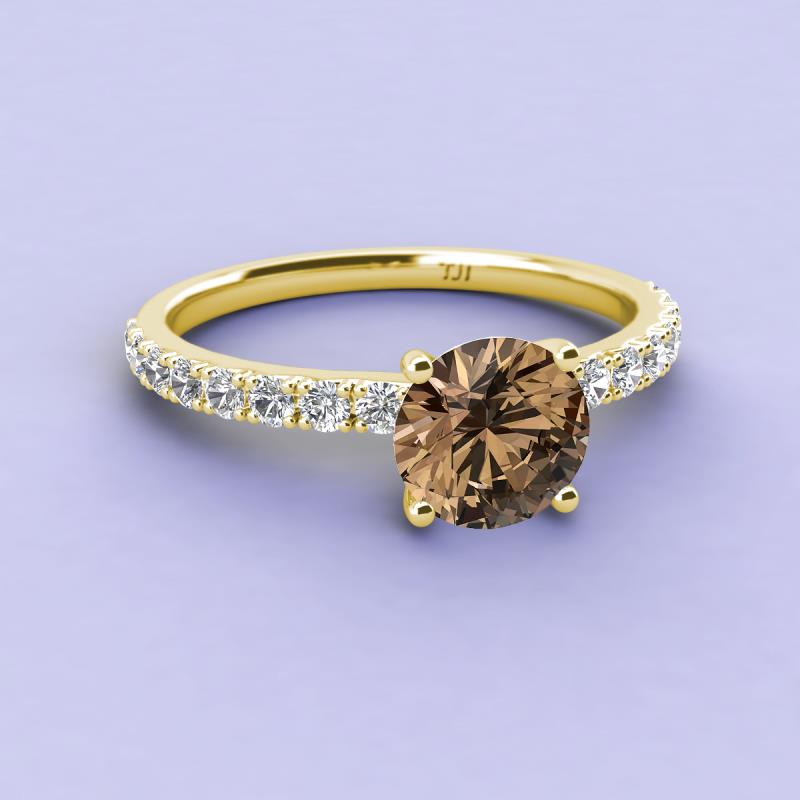 Round Smoky Quartz and Diamond 1 1/3 ctw Womens Engagement Ring 18K Yellow Gold More Details ...