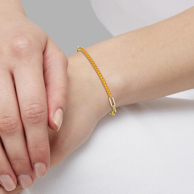Elevate your style with this Half Tennis bracelet, adorned with Citrine and a radiant paperclip chain, secured by a lobster clasp for elegance and ease.