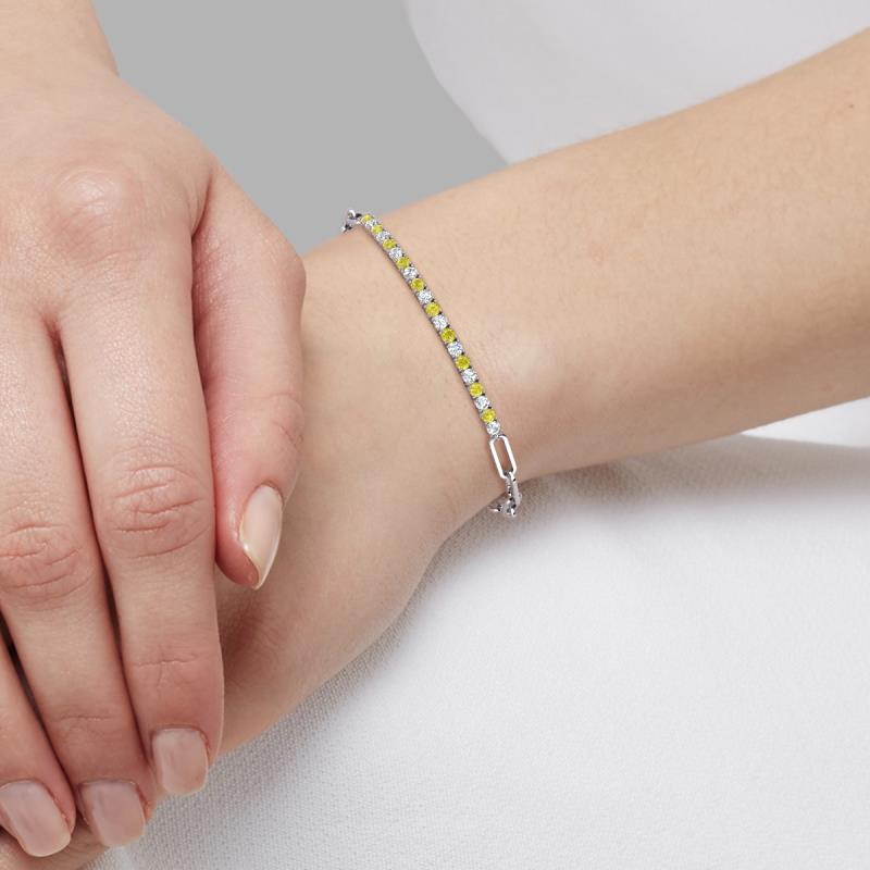 1.00 ctw Yellow Diamonds and Lab Grown Diamonds (2.40 mm) Women Paperclip Links Tennis Bracelet in 14K White Gold More Details ...