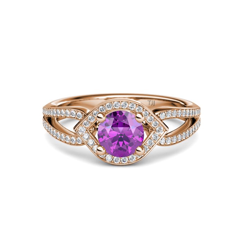 1 1/3 ctw Round Amethyst and Diamond Eye Womens Halo Engagement Ring 18K Rose Gold More Details ...