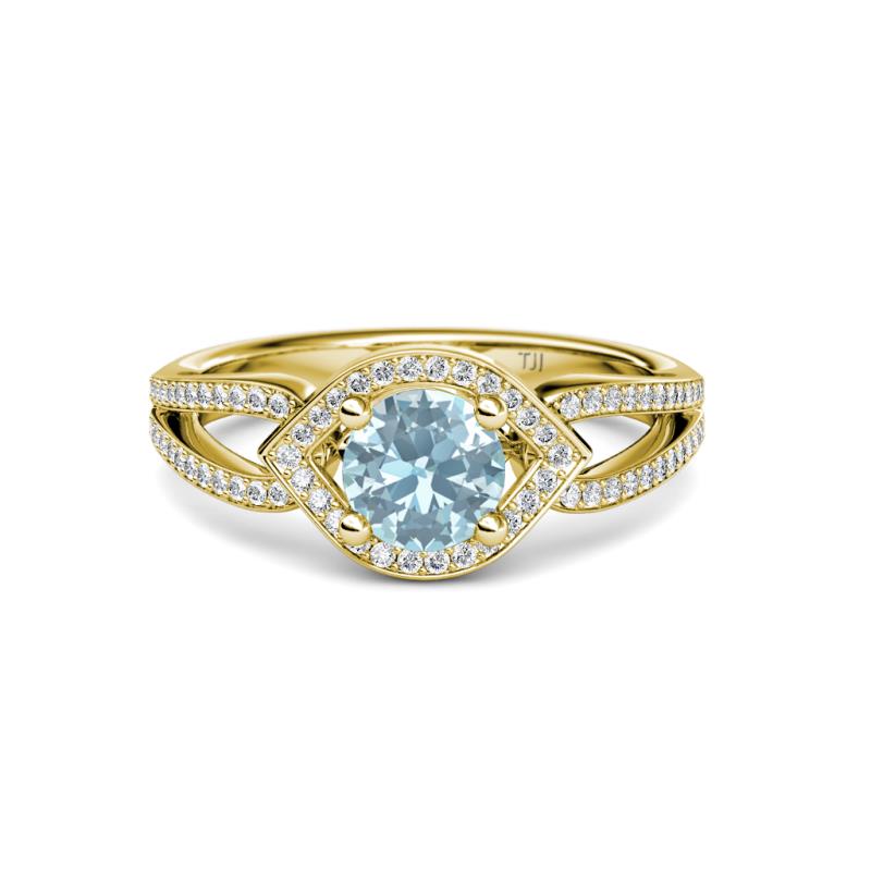 1 1/3 ctw Round Aquamarine and Diamond Eye Womens Halo Engagement Ring 18K Yellow Gold More Details ...
