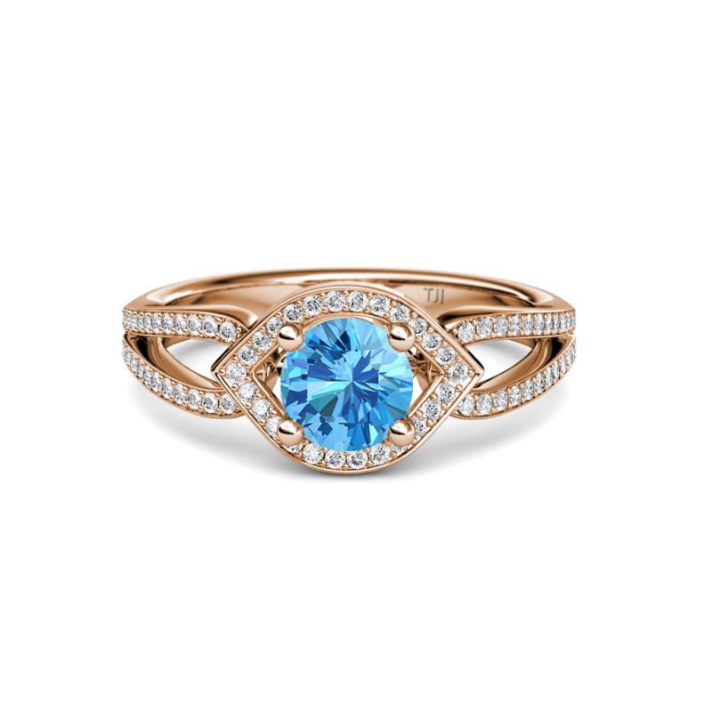 1 3/8 ctw Round Blue Topaz and Diamond Eye Womens Halo Engagement Ring 14K Rose Gold More Details ...