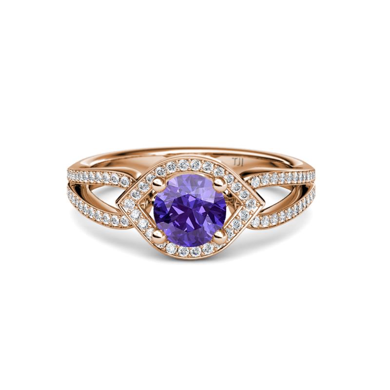 1 1/3 ctw Round Iolite and Diamond Eye Womens Halo Engagement Ring 18K Rose Gold More Details ...
