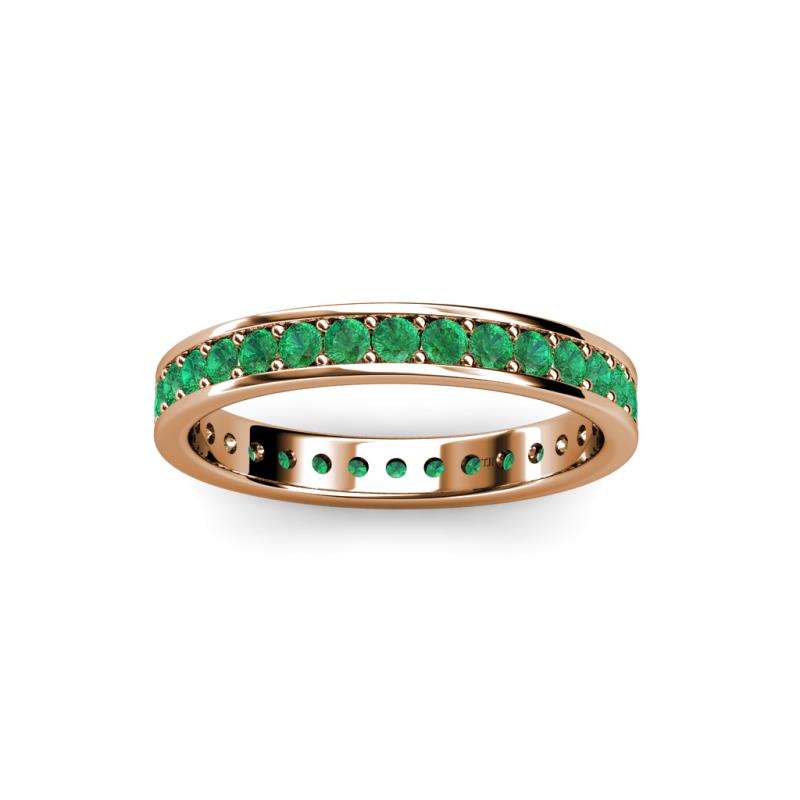 Honour your Commitment with the Gorgeous Eternity Band where shimmering Prong Set Emerald completely encircle the band indicating that your Love has no end. *As per ring size the stone and carat total weight changes.