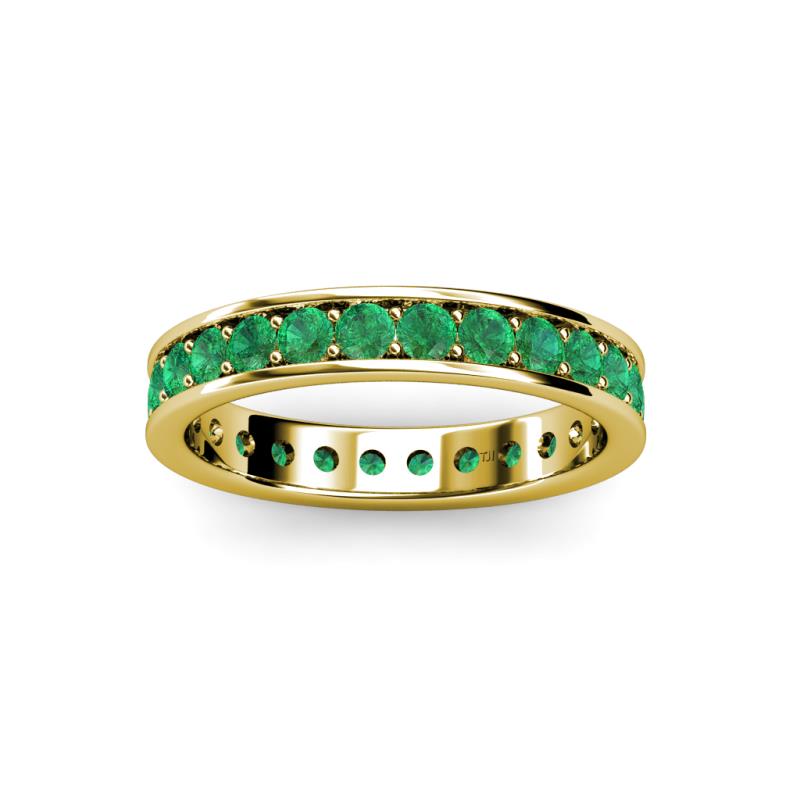 Honour your Commitment with the Gorgeous Eternity Band where shimmering Prong Set Emerald completely encircle the band indicating that your Love has no end. *As per ring size the stone and carat total weight changes.
