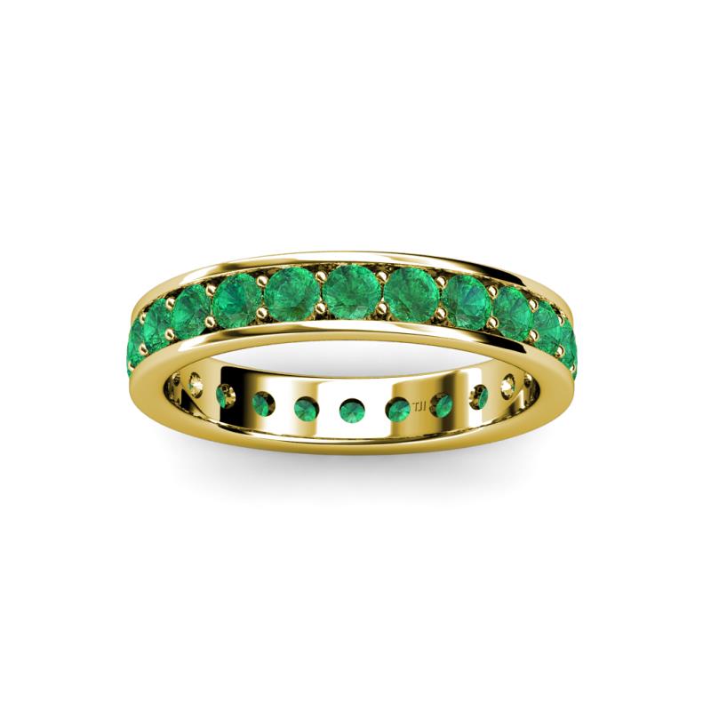 Honour your Commitment with the Gorgeous Eternity Band where shimmering Prong Set Emerald completely encircle the band indicating that your Love has no end. *As per ring size the stone and carat total weight changes.