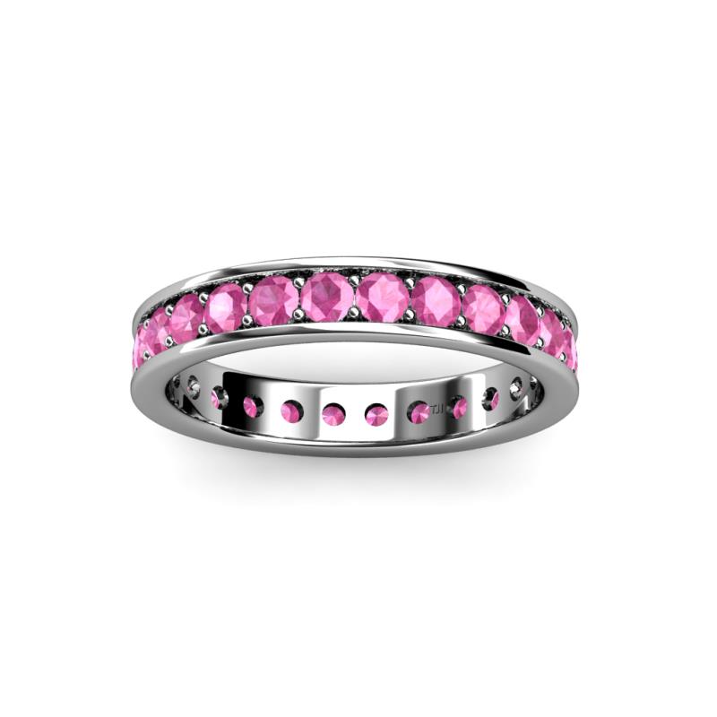 Honour your Commitment with the Gorgeous Eternity Band where shimmering Prong Set Pink Sapphire completely encircle the band indicating that your Love has no end. *As per ring size the stone and carat total weight changes.