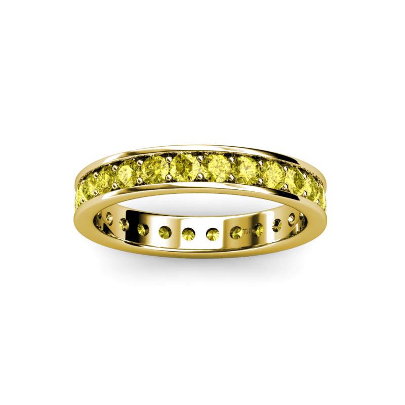 Honour your Commitment with the Gorgeous Eternity Band where shimmering Prong Set Yellow Diamond completely encircle the band indicating that your Love has no end. *As per ring size the stone and carat total weight changes.