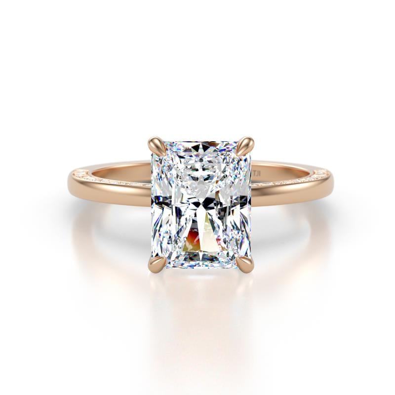 Four Tiger Claw Prong Semi Mount Hidden Halo accented 0.13 ctw Diamond Women Engagement Ring in 18K Rose Gold More Details ...