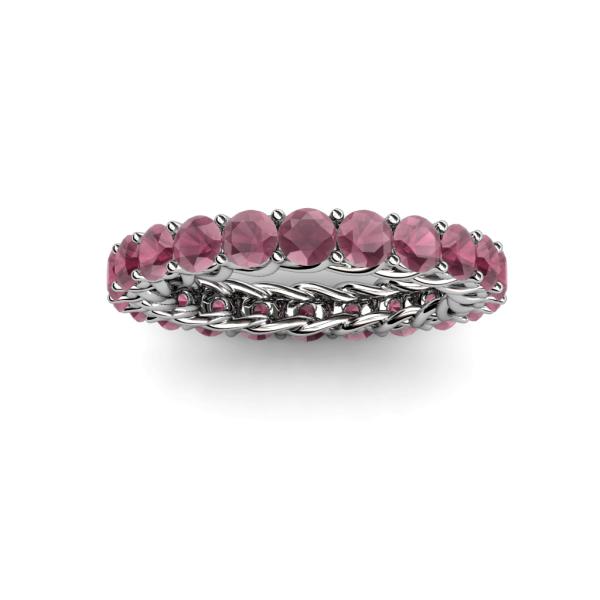 This Gorgeous Eternity Band is more than just a Band showing infinite circle of Rhodolite Garnet with intricate Gallery work along its side which makes it an ultimate symbol of your unending Love. *As per ring size the stone and carat total weight changes.