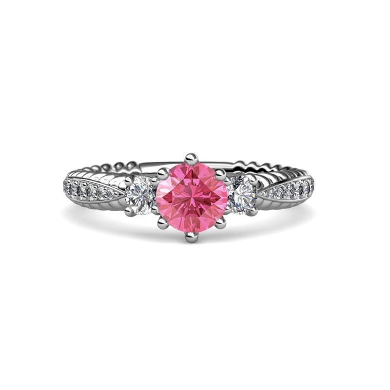 Pink Tourmaline and Diamond Womens Three Stone Engagement Ring 1.45 ctw 14K White Gold More Details ...