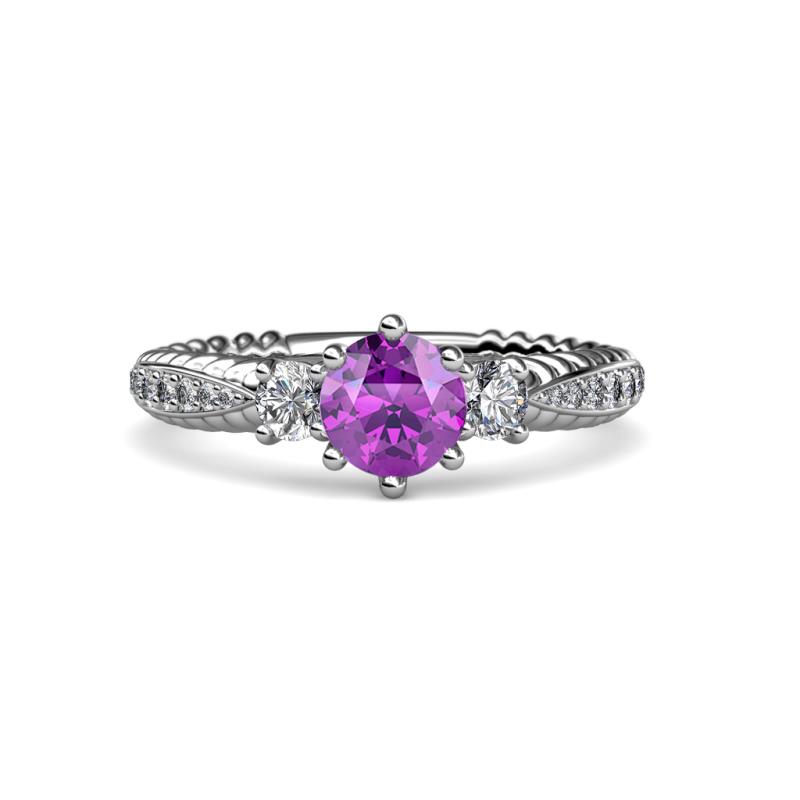 Amethyst and Diamond Womens Three Stone Engagement Ring 1.45 ctw 14K White Gold More Details ...