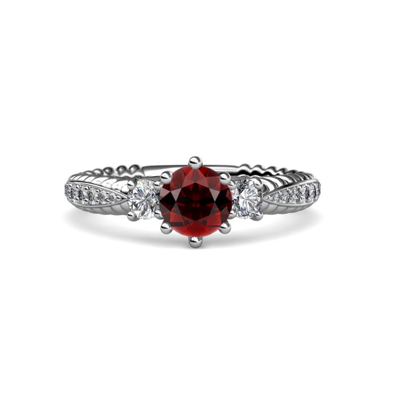 Red Garnet and Diamond Womens Three Stone Engagement Ring 1.55 ctw 14K White Gold More Details ...