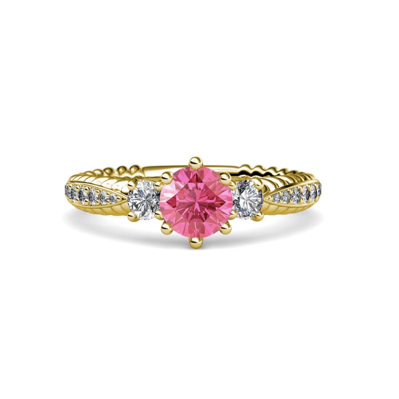 Pink Tourmaline and Diamond Womens Three Stone Engagement Ring 1.45 ctw 14K Yellow Gold More Details ...