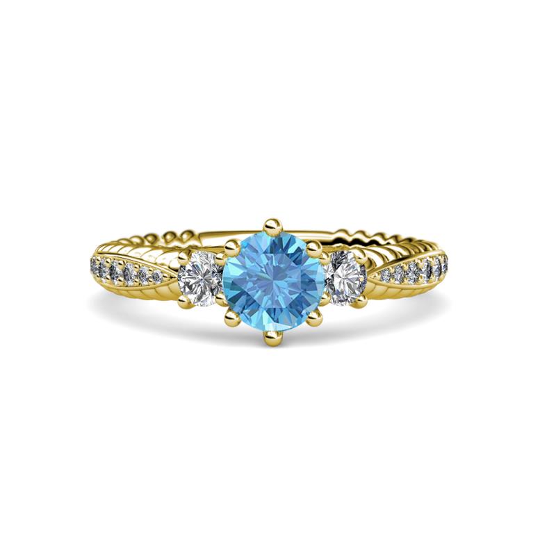 Blue Topaz and Diamond Womens Three Stone Engagement Ring 1.55 ctw 14K Yellow Gold More Details ...