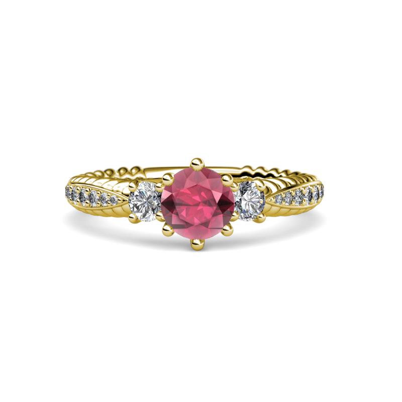 Rhodolite Garnet and Diamond Womens Three Stone Engagement Ring 1.50 ctw 14K Yellow Gold More Details ...