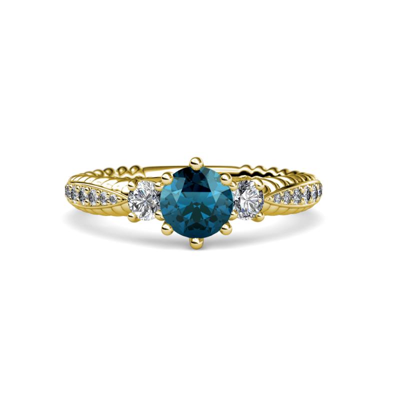 Blue and White Diamond Womens Three Stone Engagement Ring 1.48 ctw 14K Yellow Gold More Details ...