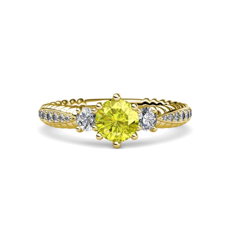 Yellow and White Diamond Womens Three Stone Engagement Ring 1.48 ctw 14K Yellow Gold More Details ...