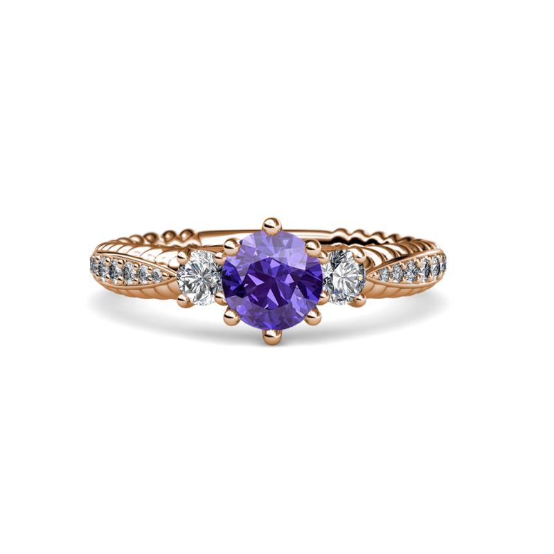 Iolite and Diamond Womens Three Stone Engagement Ring 1.45 ctw 14K Rose Gold More Details ...