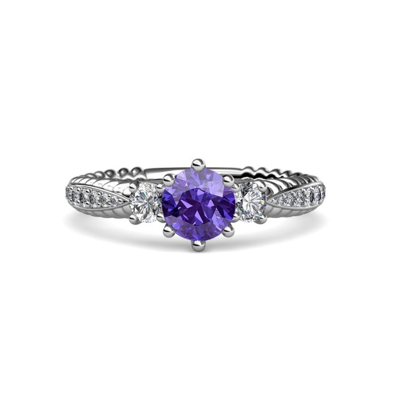 Iolite and Diamond Womens Three Stone Engagement Ring 1.45 ctw 18K White Gold More Details ...