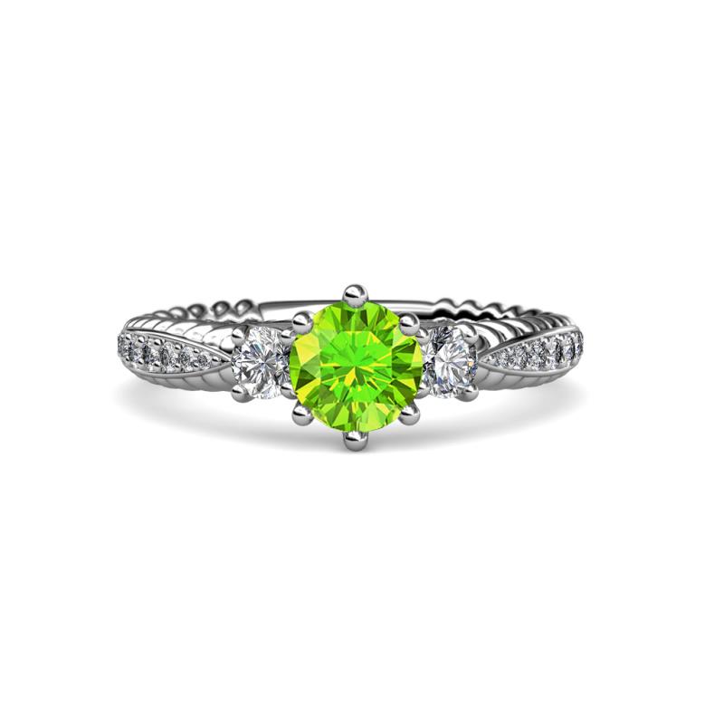 Peridot and Diamond Womens Three Stone Engagement Ring 1.60 ctw 18K White Gold More Details ...