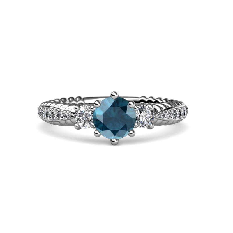 London Blue Topaz and Diamond Womens Three Stone Engagement Ring 1.55 ctw 18K White Gold More Details ...