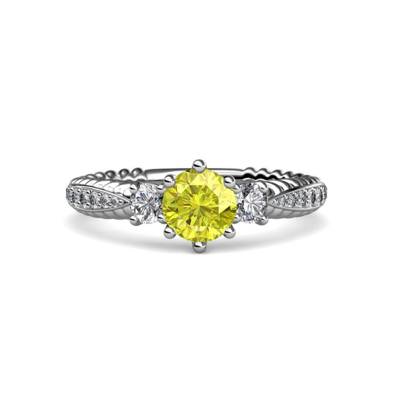 Yellow and White Diamond Womens Three Stone Engagement Ring 1.48 ctw 18K White Gold More Details ...