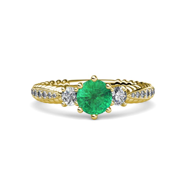 Emerald and Diamond Womens Three Stone Engagement Ring 1.25 ctw 18K Yellow Gold More Details ...