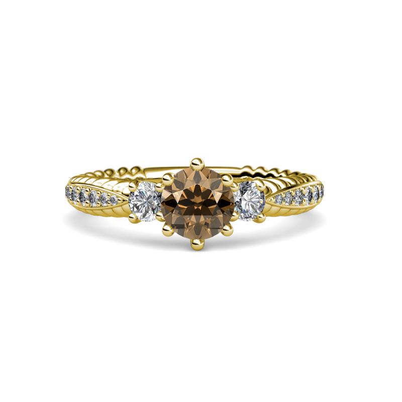 Smoky Quartz and Diamond Womens Three Stone Engagement Ring 1.45 ctw 18K Yellow Gold More Details ...