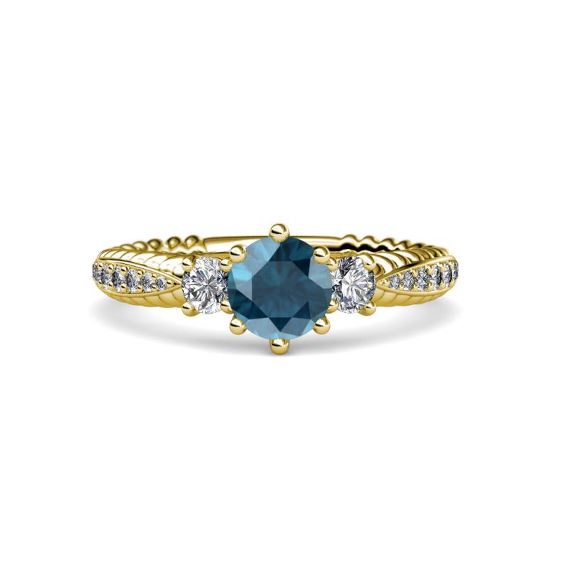 London Blue Topaz and Diamond Womens Three Stone Engagement Ring 1.55 ctw 18K Yellow Gold More Details ...