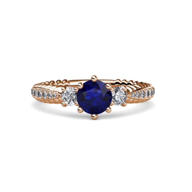 Blue Sapphire and Diamond Womens Three Stone Engagement Ring 1.45 ctw 18K Rose Gold More Details ...