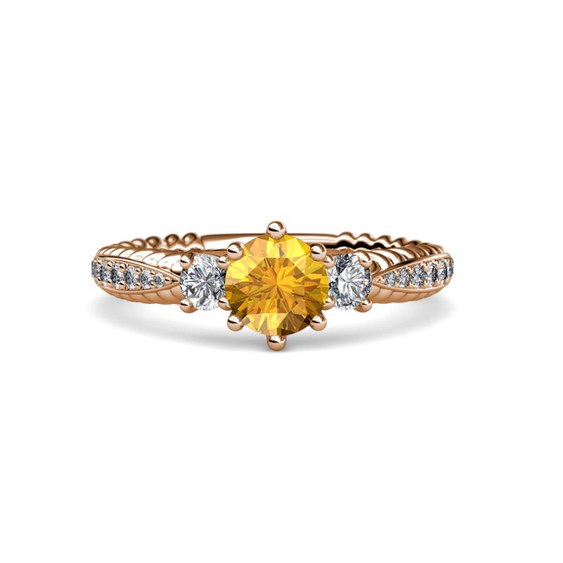 Citrine and Diamond Womens Three Stone Engagement Ring 1.45 ctw 18K Rose Gold More Details ...