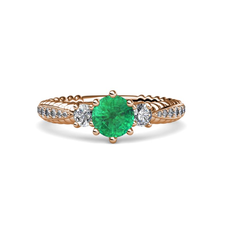Emerald and Diamond Womens Three Stone Engagement Ring 1.25 ctw 18K Rose Gold More Details ...