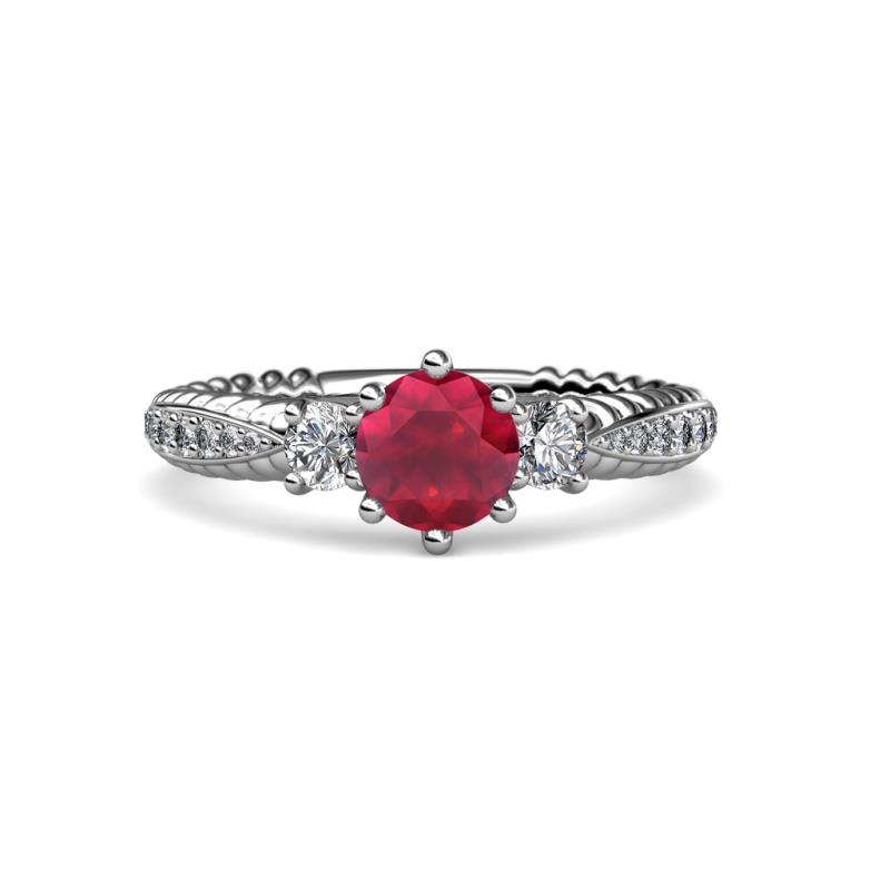 Ruby and Diamond Womens Three Stone Engagement Ring 1.45 ctw Platinum More Details ...