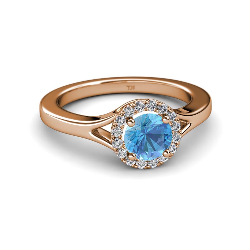 Blue Topaz and Diamond Womens Halo Engagement Ring 1.21 ctw 18K Rose Gold More Details ...