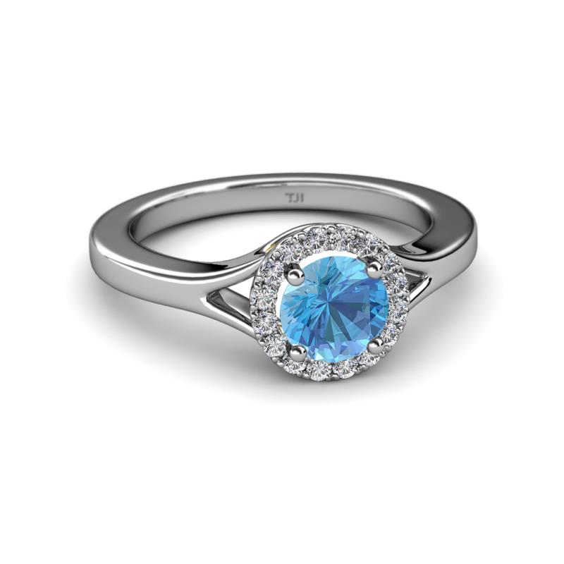 Blue Topaz and Diamond Womens Halo Engagement Ring 1.21 ctw Platinum More Details ...