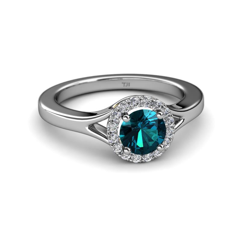 Blue and White Diamond Womens Halo Engagement Ring 1.16 ctw 14K White Gold More Details ...