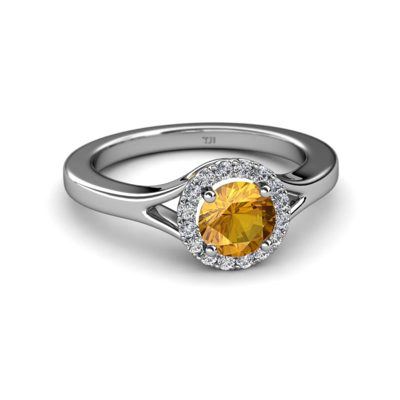 Citrine and Diamond Womens Halo Engagement Ring 1.03 ctw 14K White Gold More Details ...