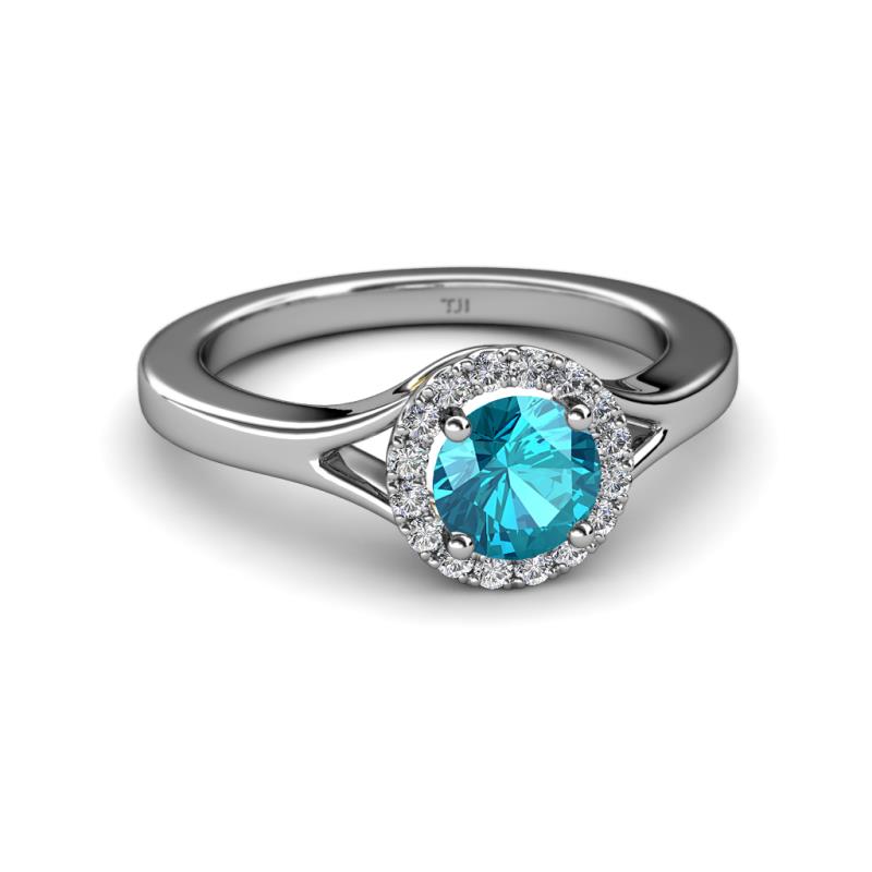 London Blue Topaz and Diamond Womens Halo Engagement Ring 1.21 ctw 14K White Gold More Details ...