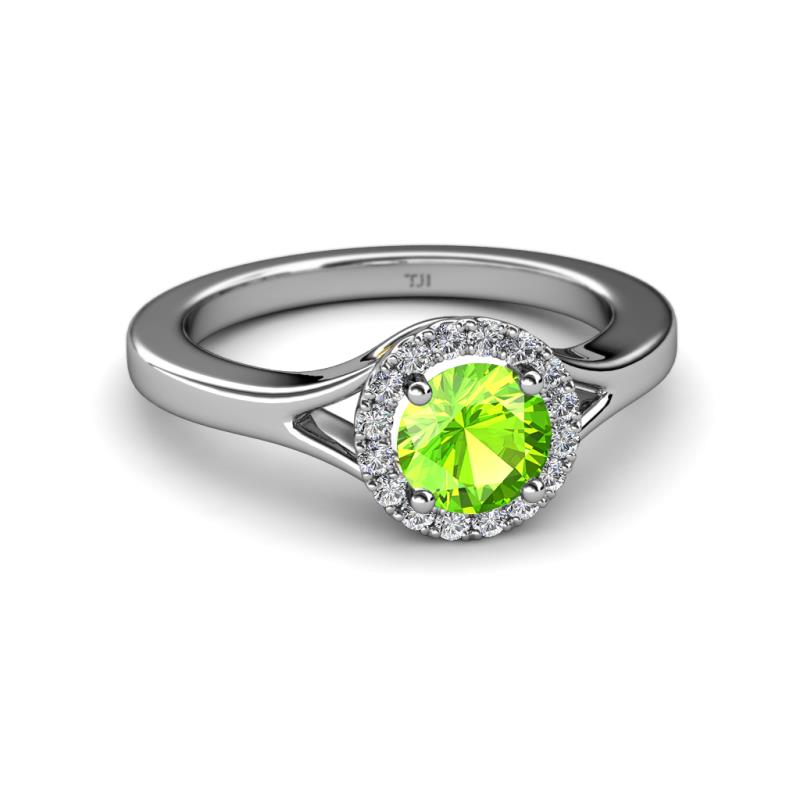 Peridot and Diamond Womens Halo Engagement Ring 1.26 ctw 14K White Gold More Details ...