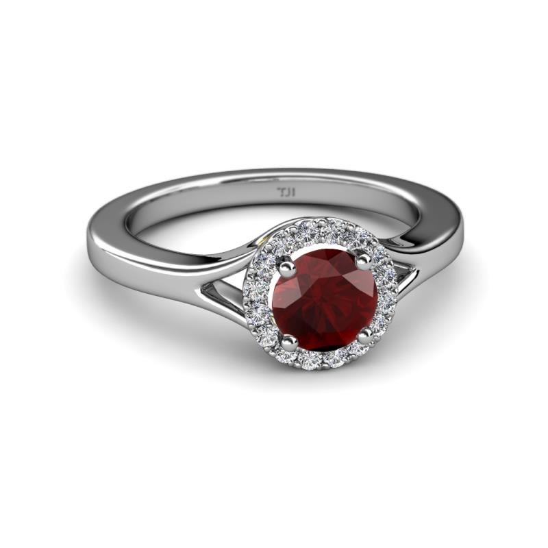 Red Garnet and Diamond Womens Halo Engagement Ring 1.21 ctw 14K White Gold More Details ...