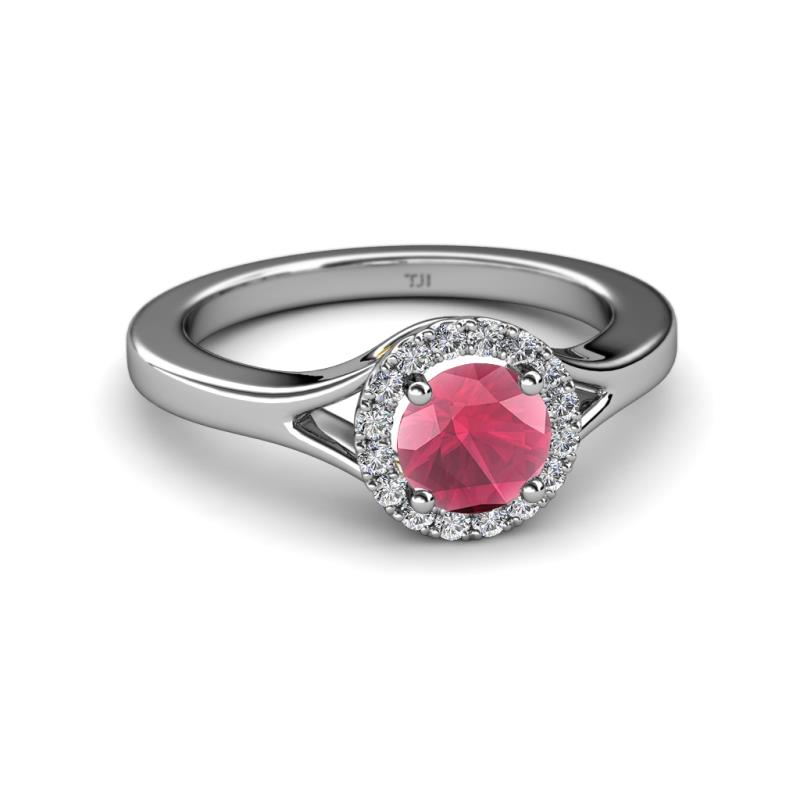 Rhodolite Garnet and Diamond Womens Halo Engagement Ring 1.16 ctw 14K White Gold More Details ...
