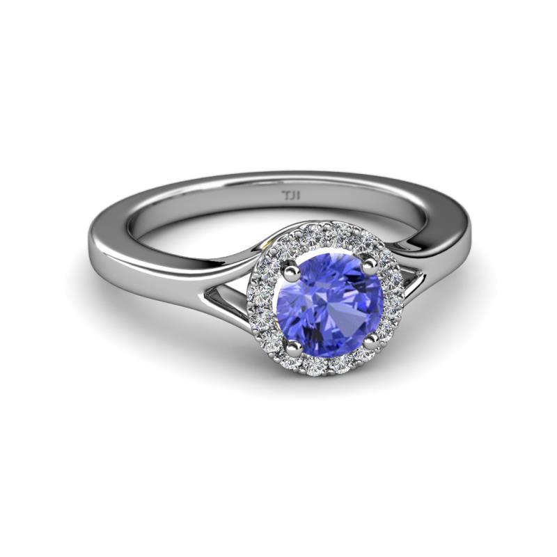 Tanzanite and Diamond Womens Halo Engagement Ring 1.08 ctw 14K White Gold More Details ...